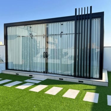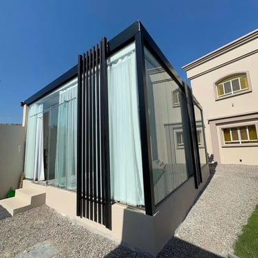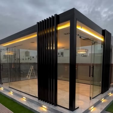 الغرف الزجاجية هي مساحات مغلقة يتم تصميمها باستخدام زجاج عالي الجودة مع هياكل من الألمنيوم أو الحديد، وتتميز بإطلالة مفتوحة على الخارج مع توفير حماية من الحرارة والغبار والعوامل الجوية.