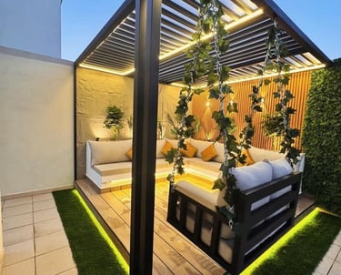 نقدم خدمات تصميم الجلسات الخارجية بالرياض بأسلوب عصري يجمع بين الراحة والأناقة، لنحوّل مساحتك الخارجية إلى مكان مثالي للاسترخاء والاستمتاع. نستخدم خامات عالية الجودة تتحمل الظروف المناخية، مع تنسيق الإضاءة والنباتات والمظلات بشكل متكامل يمنحك جلسة فاخرة تناسب جميع الأذواق والمساحات.